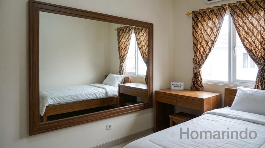 Pemilihan cermin besar dengan bingkai minimalis dan desain yang elegan juga akan memberikan sentuhan estetika yang menarik dalam ruangan. Dengan memperhatikan proporsi dan penempatan cermin yang tepat, Anda dapat menciptakan harmoni visual yang mengoptimalkan fungsi cermin sebagai elemen dekoratif sekaligus penyemangat tampilan ruangan. Kesimpulannya, pemanfaatan cermin besar dalam desain ruang bisa menjadi trik pintar untuk menciptakan ilusi optik yang membuat kamar 3×3 meter terasa lebih luas dan nyaman.