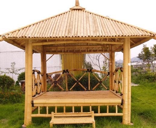 Gazebo bambu memberikan nuansa alami dan keindahan yang elegan untuk taman belakang Anda. Bambu, sebagai bahan utama, memberikan kesan hangat dan ramah lingkungan. Dengan tekstur alami dan warna ringan, gazebo bambu cocok untuk menciptakan suasana santai dan damai di area taman Anda.