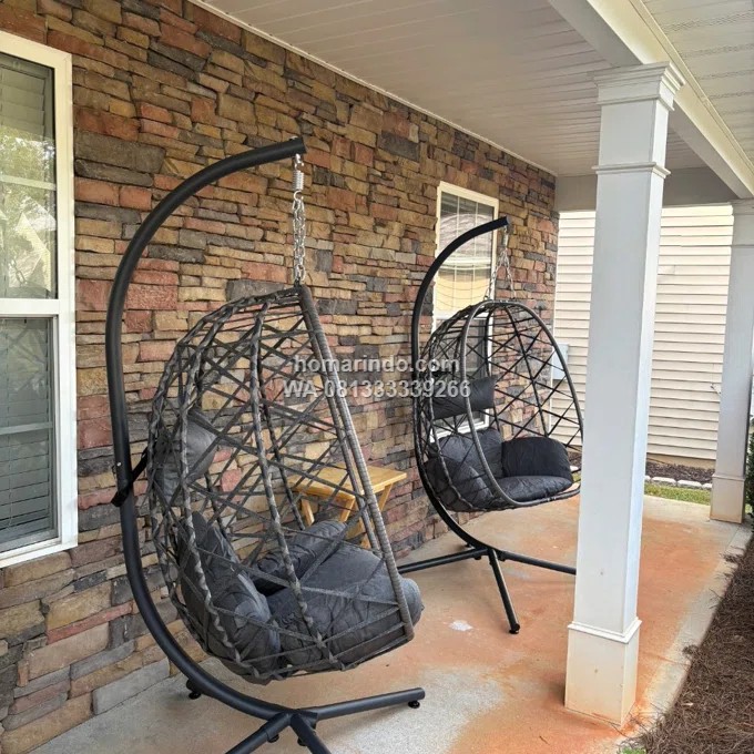 Nikmati momen santai yang lebih nyaman dengan Ayunan Gantung Outdoor Rotan Sintetis Warna Hitam dari Homarindo. Desain modern, rangka aluminium anti karat, dan bantalan empuk berkualitas menjadikannya pilihan sempurna untuk teras, taman, balkon, hingga area komersial.