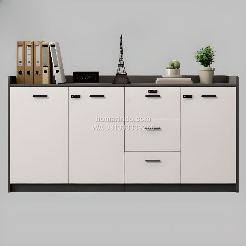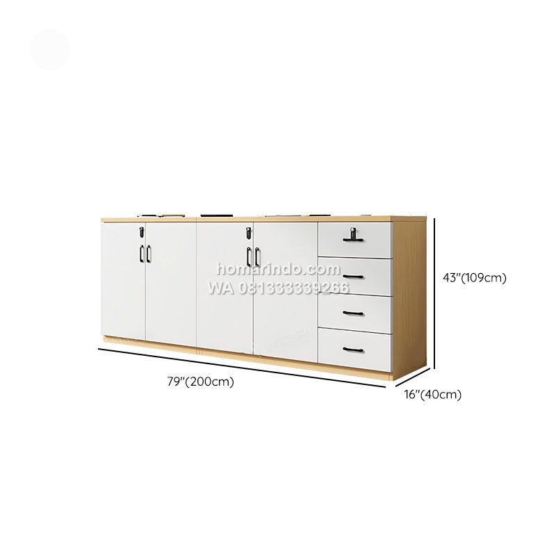 Temukan solusi penyimpanan dokumen yang elegan dan praktis dengan Lemari Arsip Kantor Minimalis 4 Laci 4 Pintu – Warna Putih dari ­­Homarindo. Dibalut warna putih yang bersih dan finishing natural pada sisi kayu, lemari ini menghadirkan suasana ruang kerja yang terang, tertata, dan profesional. Dengan konfigurasi empat laci yang cocok untuk file-folder penting dan empat pintu yang membuka ke rak luas untuk arsip besar atau logistik kantor, produk ini sangat cocok untuk kantor, ruang meeting, atau area administrasi.