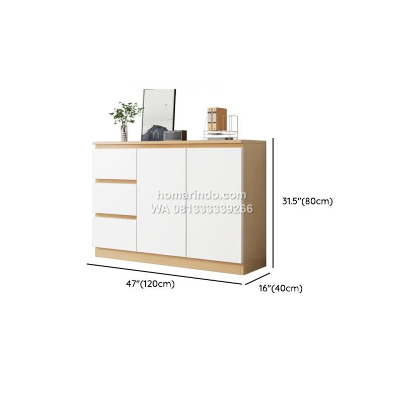 • Jumlah Penyimpanan: 3 laci + 2 pintu lemari