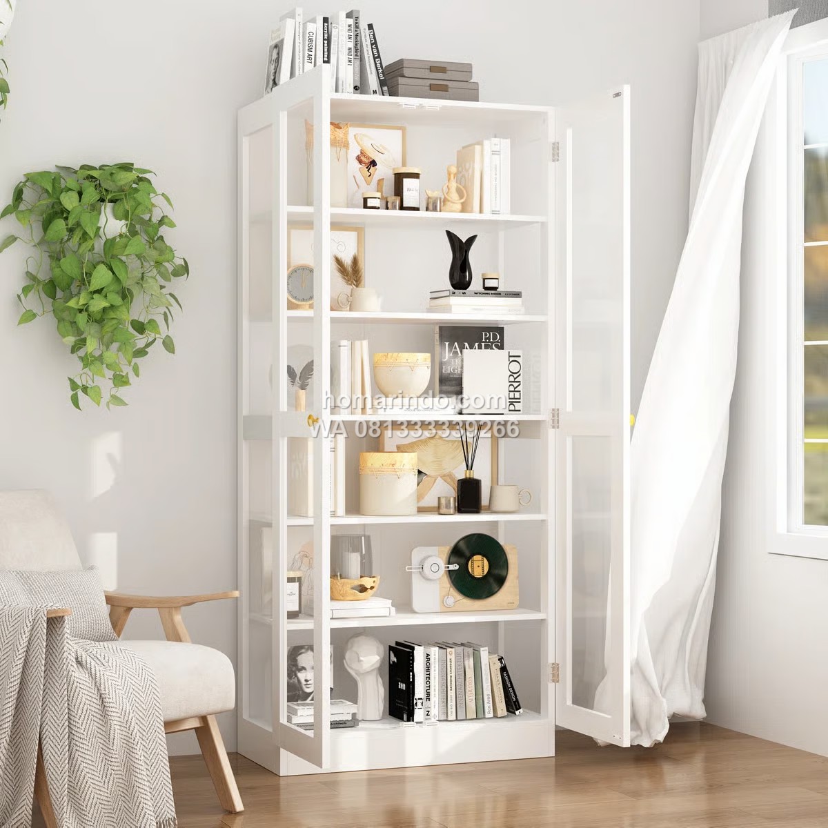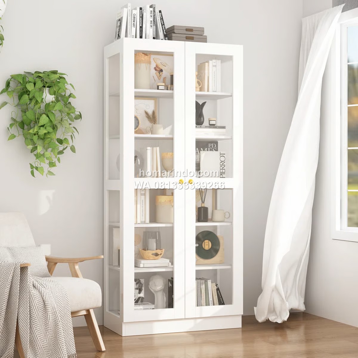 Tampilkan keindahan ruang tamu Anda dengan Lemari Hias Minimalis Ruang Tamu Kecil 2 Pintu dari Homarindo. Desain simple, elegan, dan fungsional—sempurna untuk menampilkan koleksi hiasan kesayangan Anda di ruang tamu modern.