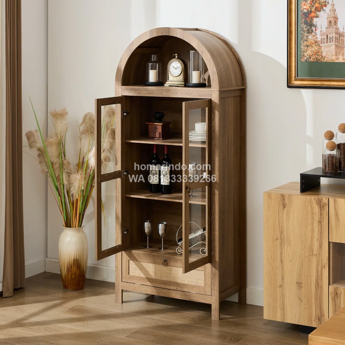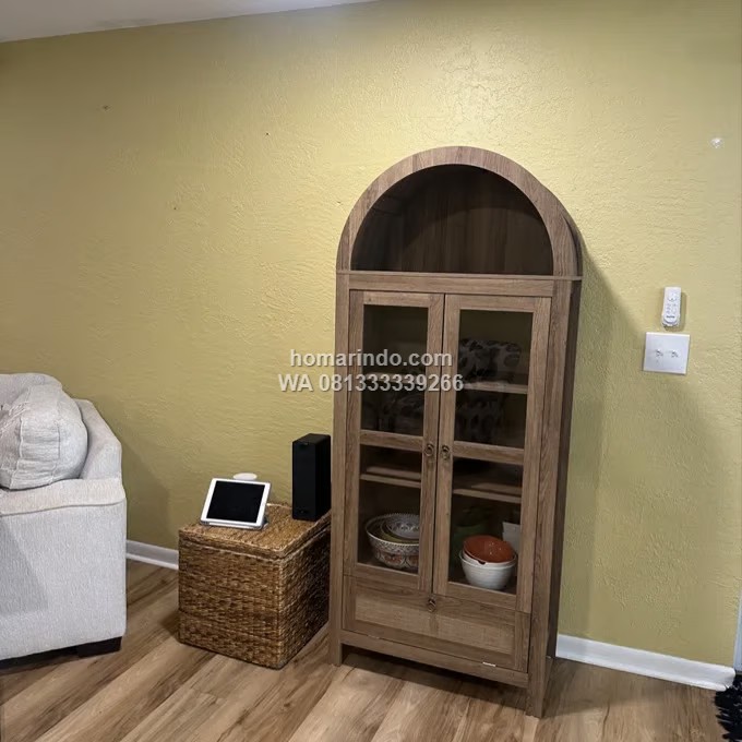Persembahkan tampilan terbaik bagi koleksi barang berharga Anda dengan Lemari Pajangan Kayu Jati Pintu Kaca dari Homarindo. Terbuat dari kayu jati pilihan yang terkenal kuat, awet, dan memiliki tekstur alami yang indah, lemari ini memadukan fungsionalitas dan keindahan seni kayu Jepara dalam satu kesatuan.
