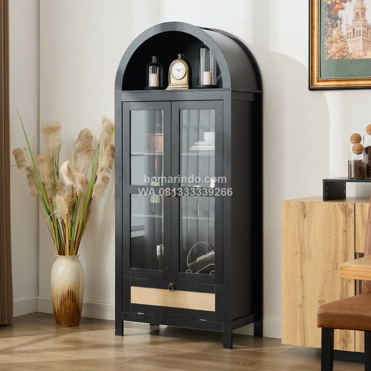 Finishing melamine doff atau glossy memberikan kilau elegan sekaligus perlindungan terhadap goresan dan kelembapan, menjaga tampilan lemari tetap menawan dalam jangka panjang. Dilengkapi pintu kaca tebal transparan, memungkinkan Anda menampilkan koleksi dekorasi, buku, piala, atau pernak-pernik favorit dengan aman dan penuh gaya.