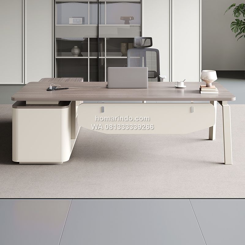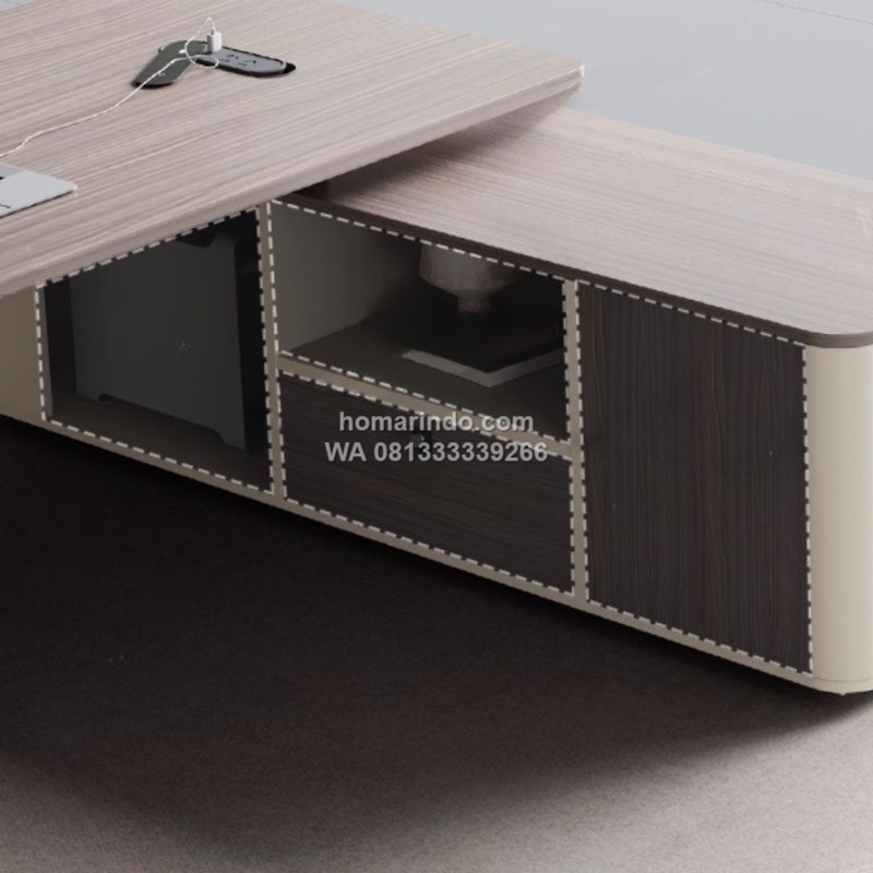Dilengkapi laci penyimpanan yang ergonomis, meja ini membuat ruang kerja tetap rapi dan terorganisir. Sangat cocok untuk direktur, pimpinan kantor, ruang kerja CEO, hingga workstation eksekutif.
