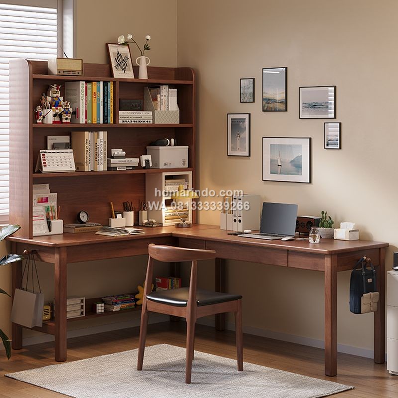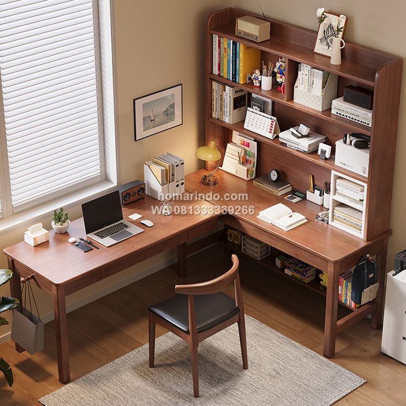 Meja Kerja Di Rumah L Shape Kayu Jati Minimalis ini dirancang untuk menghadirkan ruang kerja yang nyaman, modern, dan fungsional. Terbuat dari kayu jati berkualitas dengan desain bentuk L yang efisien, cocok untuk meningkatkan fokus dan produktivitas di rumah.