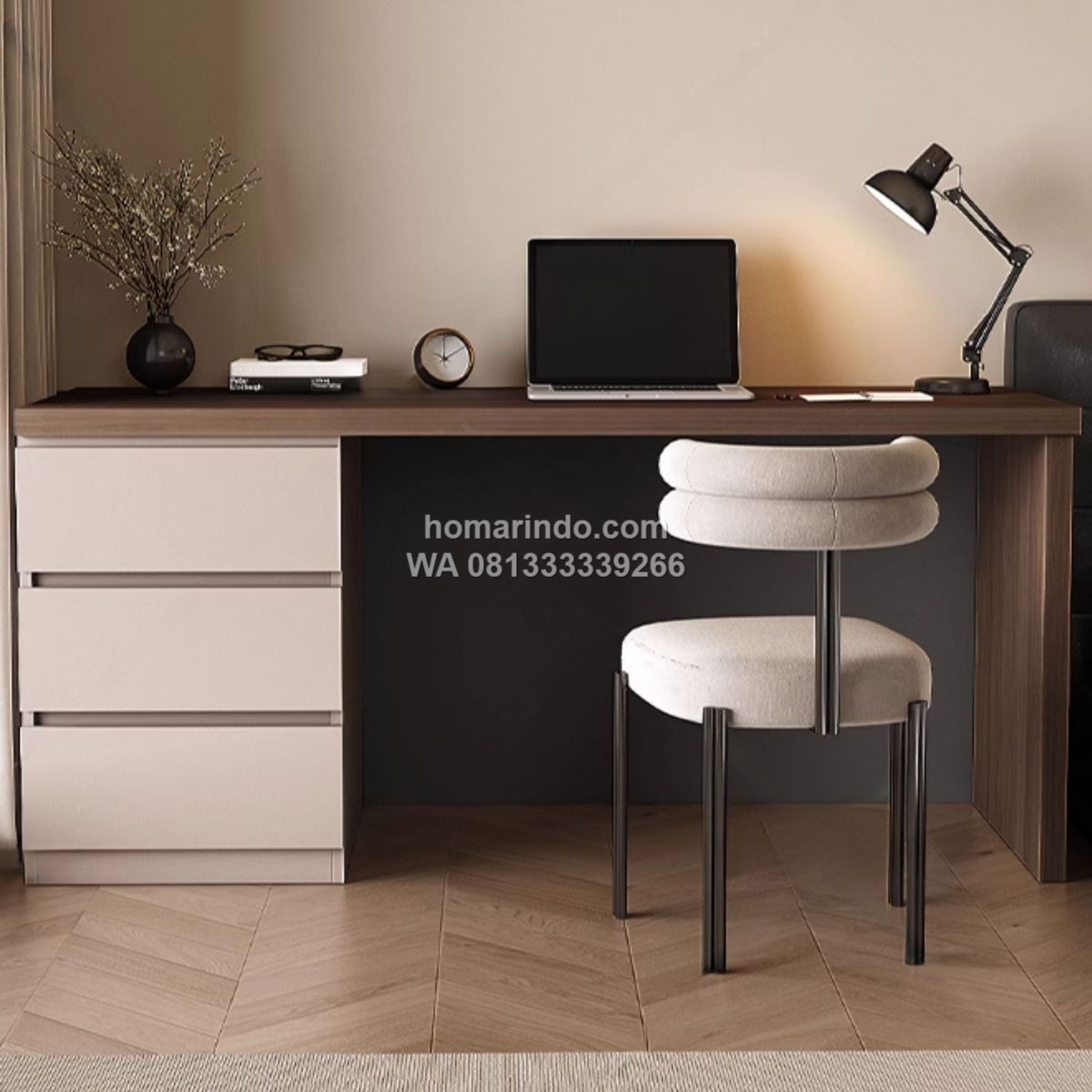 Upgrade ruang kerja Anda dengan Meja Kerja Minimalis Dengan 3 Laci Penyimpanan, pilihan tepat untuk Anda yang mengutamakan kenyamanan, kerapian, dan estetika modern. Didesain dengan gaya minimalis yang elegan, meja ini menghadirkan tampilan bersih yang mudah dipadukan dengan berbagai konsep interior rumah, kantor, maupun ruang kerja pribadi.