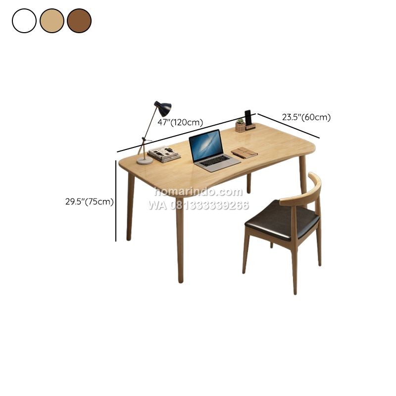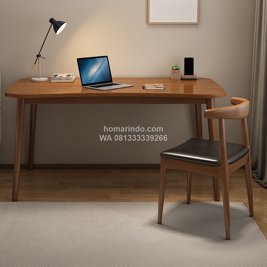 Desainnya yang simple menjadikannya mudah dipadukan dengan berbagai interior ruangan, baik untuk kantor, ruang belajar, maupun home office. Permukaan meja yang halus dan finishing natural membuatnya terlihat premium sekaligus memberikan kesan hangat pada ruangan.
