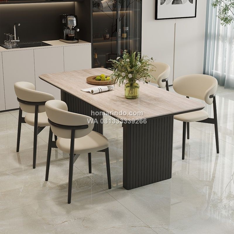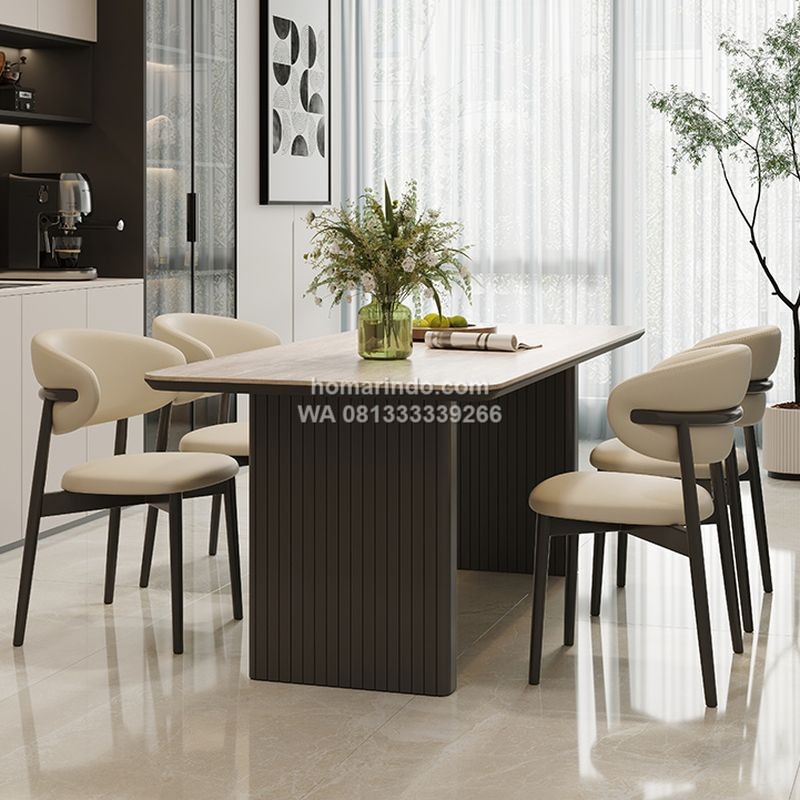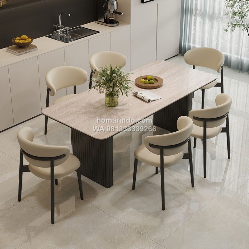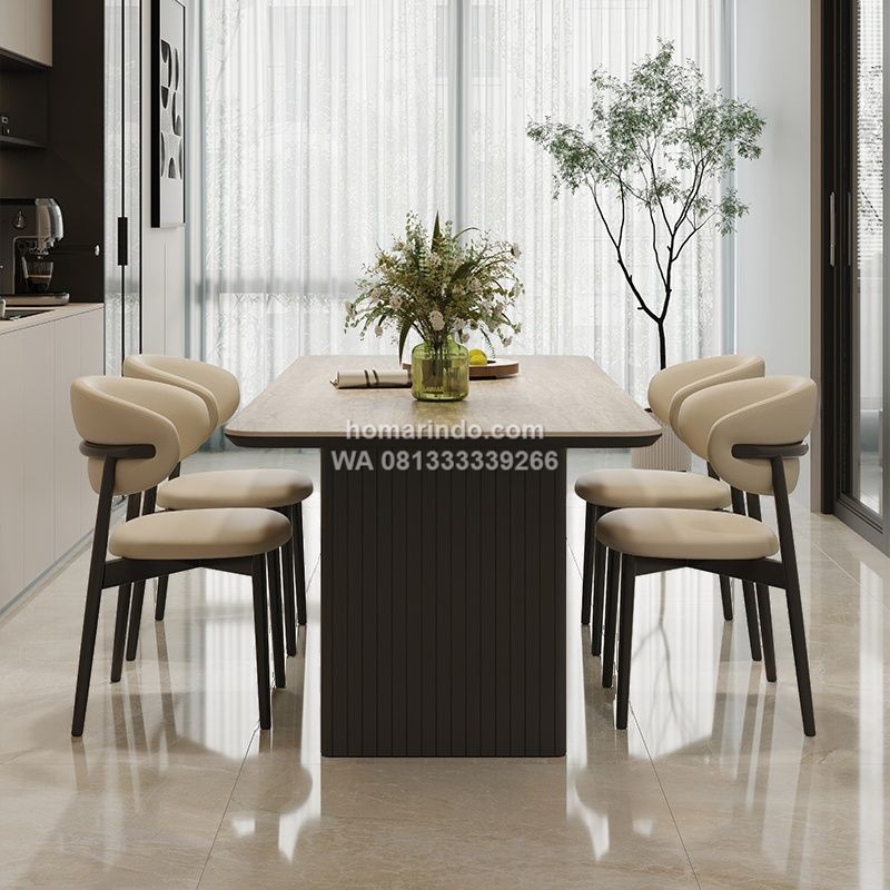 Set meja makan ini sangat ideal untuk digunakan sehari-hari bersama keluarga, maupun untuk menjamu tamu dengan kesan modern natural yang menawan.